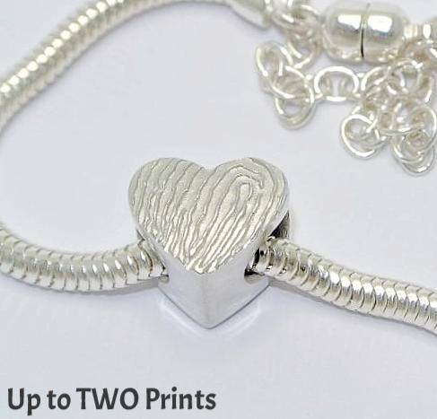 This double-sided heart bead preserves the most unique part of a person—their fingerprint. It can feature a single fingerprint with an inscription or fingerprints on both sides for an extra-special touch.