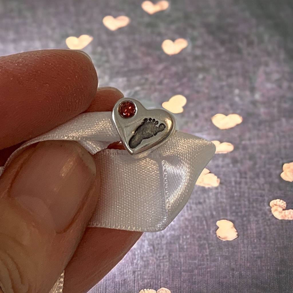 Handprint Heart Bracelet Bead with One Gemstone - Little Fingers 'n' Toes