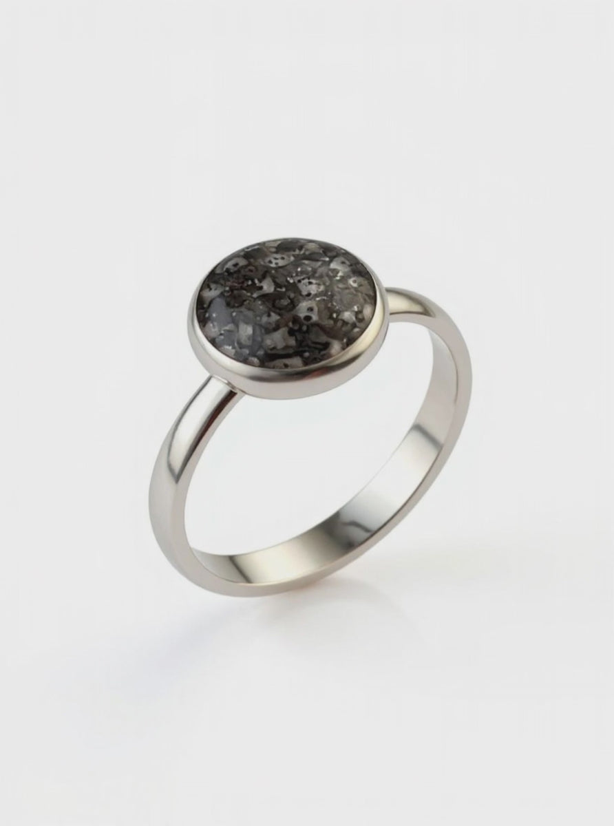 A beautifully balanced, perfectly circular ring featuring a 10mm recessed setting designed to securely hold a meaningful amount of memorial ashes.