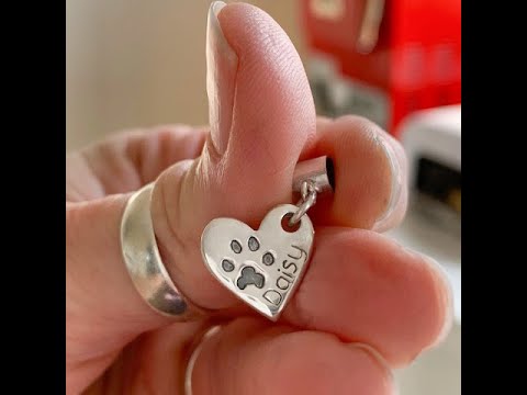 A super cute chunky pawprint silver bracelet charm. You can have a print on one side and a short inscription (a name) and on the other side a date or short message.